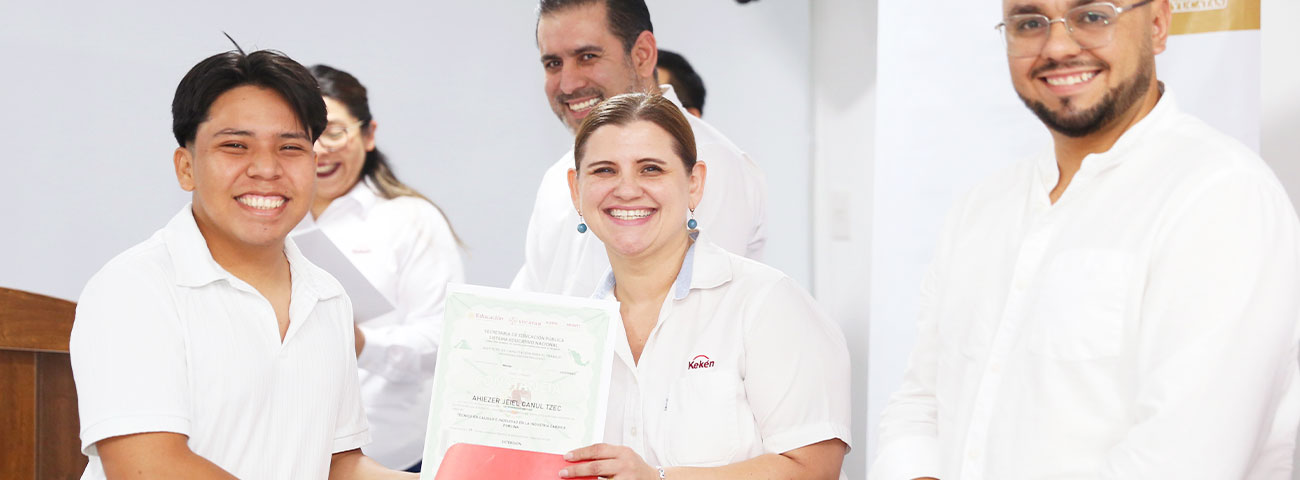 La ceremonia de entrega contó con la presencia de Patricia Zelaya González, gerente de Capital Humano; Alan Sinecio Macías, gerente de Operaciones de la Planta Procesadora Umán; y Jonathan Rodríguez Medina, director técnico académico del Instituto de Capacitación.